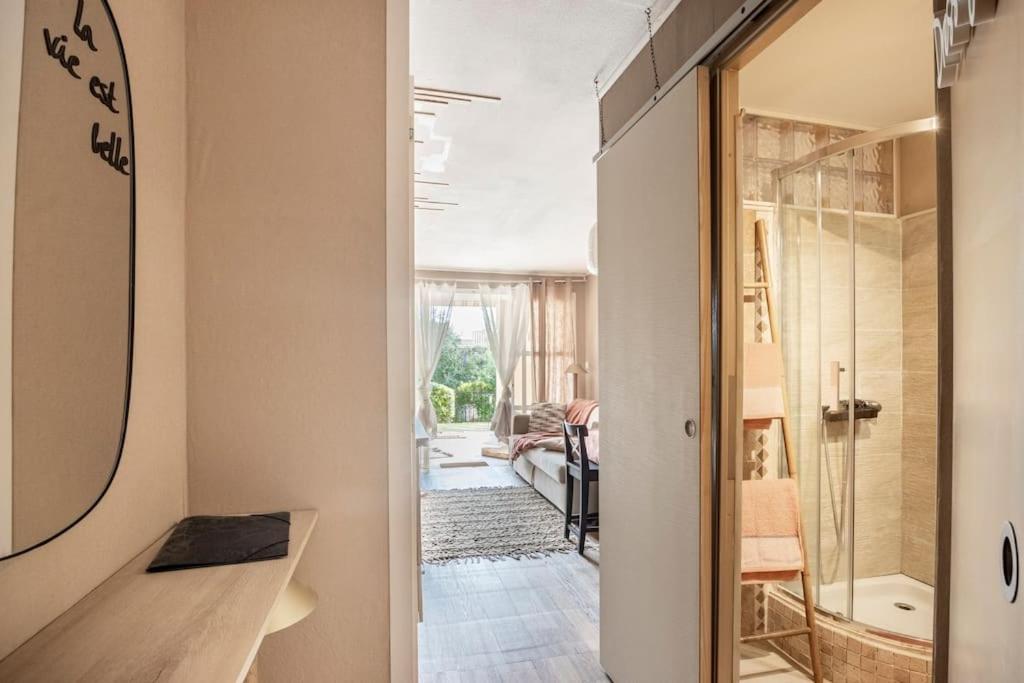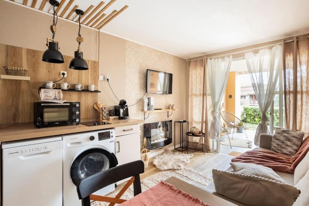 Appartement 1 Chambre. The pool with a view and fireplace are the standout features of this apartment. Featuring a private entrance, this apartment also comprises 1 living room, 1 separate bedroom and 1 bathroom with a walk-in shower. The well-equipped kitchen features a stovetop, a refrigerator, a dishwasher and kitchenware. Boasting a terrace with garden views, this apartment also provides a washing machine and a flat-screen TV. The unit offers 2 beds.