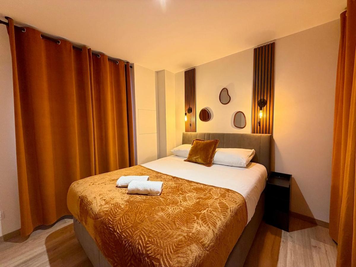 Cet appartement comporte 1 chambre, une télévision à écran plat, la climatisation et un salon.