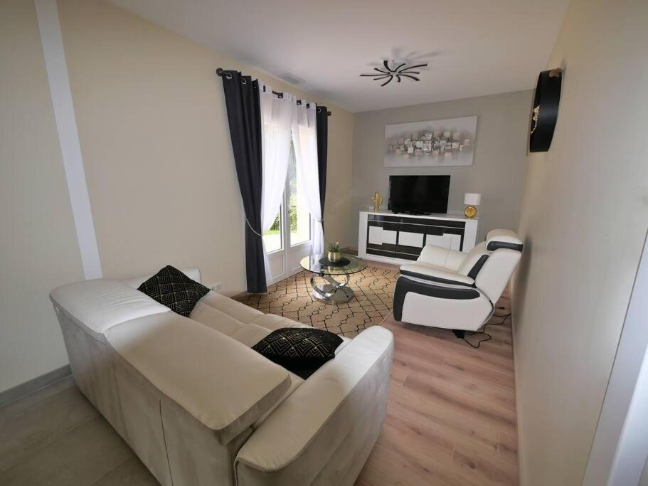 Maison 2 Chambres. Featuring a private entrance, this air-conditioned holiday home consists of a kitchen, 2 bedrooms and 1 bathroom with a shower and a hairdryer. Guests will find a stovetop, a refrigerator, a dishwasher and kitchenware in the well-equipped kitchen. The holiday home also offers a barbecue. Boasting a terrace with garden views, this holiday home also provides a washing machine and a flat-screen TV with streaming services. The unit offers 2 beds.