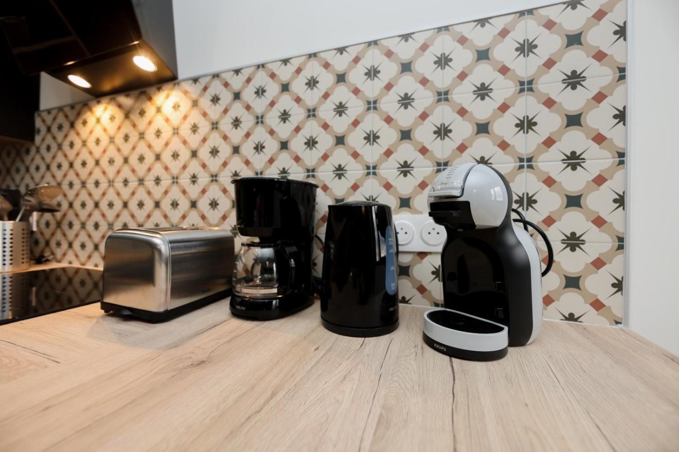 Appartement 1 Chambre. This air-conditioned apartment is comprised of 1 living room, 1 separate bedroom and 1 bathroom with a shower. Meals can be prepared in the kitchen, which is fitted with a stovetop, a refrigerator, a dishwasher and an oven. The apartment offers a washing machine, a tea and coffee maker, a dining area, heating, as well as a flat-screen TV. The unit offers 2 beds.