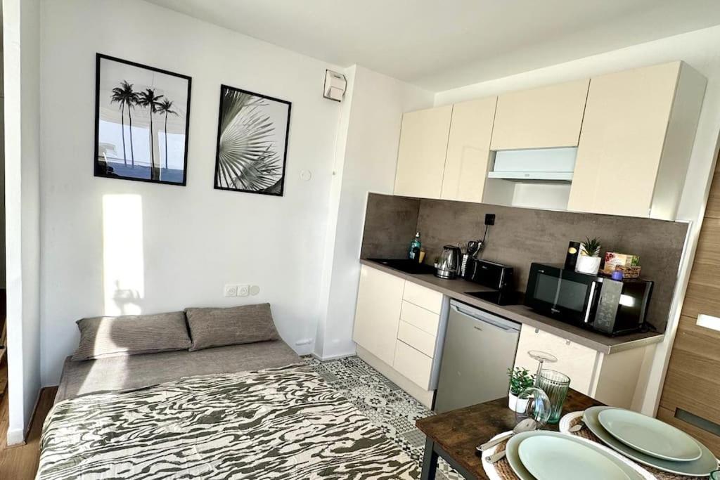 Appartement 1 Chambre. This apartment consists of 1 living room, 1 separate bedroom and 1 bathroom with a bath and a hairdryer. Guests can make meals in the kitchen that is equipped with a stovetop, a refrigerator, kitchenware and a microwave. Featuring a balcony with a quiet street view, this apartment also provides a washing machine and a flat-screen TV. The unit offers 2 beds.