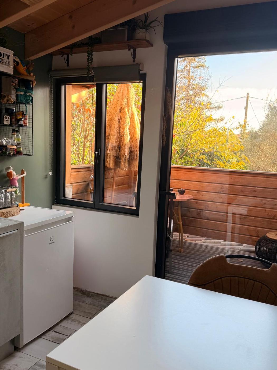 Appartement 1 Chambre. Boasting a private entrance, this air-conditioned apartment comes with 1 living room, 1 separate bedroom and 1 bathroom with a walk-in shower and a hairdryer. Guests can make meals in the kitchen that features a stovetop, a refrigerator, kitchenware and an oven. Featuring a terrace with garden views, this apartment also features soundproof walls and a flat-screen TV. The unit has 2 beds.
