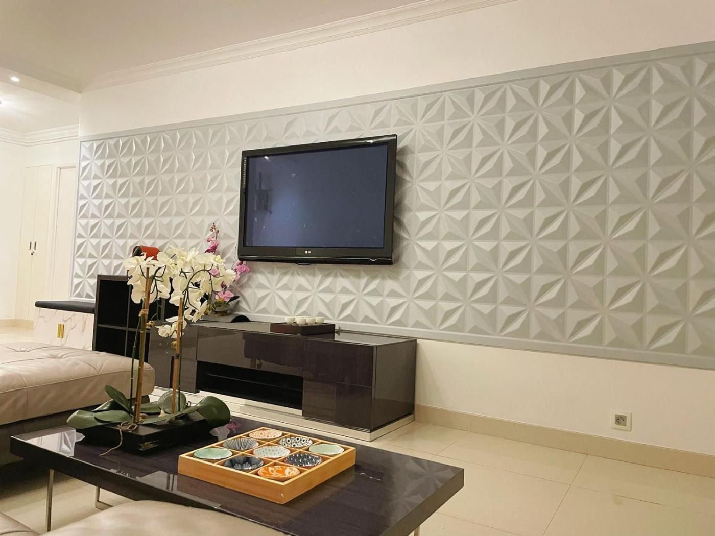 Cet appartement comporte 3 chambres, une télévision à écran plat, ainsi qu’une cuisine.