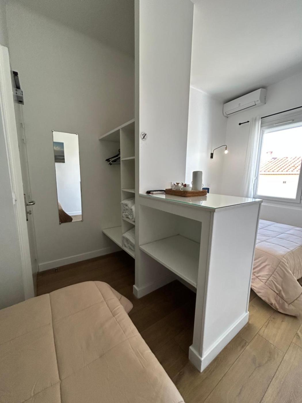 Chambre Double - Vue sur Mer. Cette chambre double dispose de parquet et du chauffage. La salle de bains privative est pourvue d’une douche et d’un sèche-cheveux. Cette chambre double est climatisée et offre une vue sur la mer. Elle comprend une télévision à écran plat, une armoire, une bouilloire électrique et un dressing. Ce logement comporte 1 lit. ;