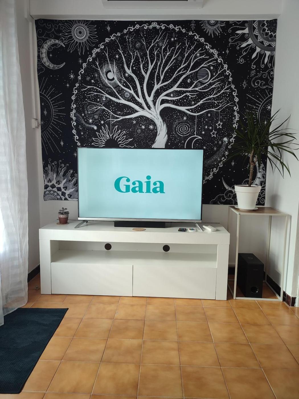 Cet appartement comporte 1 chambre, une télévision à écran plat, la climatisation et un salon.