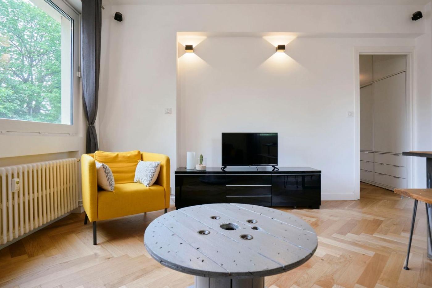 Appartement 1 Chambre. This apartment is comprised of 1 bedroom, a kitchen and 1 bathroom with a bath and a hairdryer. The kitchen is fitted with a dishwasher, an oven and a microwave. This apartment features a coffee machine, heating and a TV with streaming services. The unit offers 1 bed.