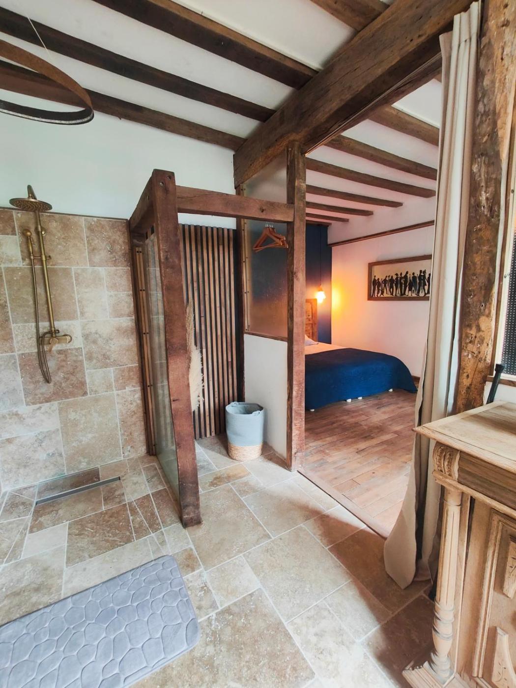 Chambre Double - Accessible aux Personnes à Mobilité Réduite. The spacious double room offers a tea and coffee maker, a dining area, a terrace with garden views as well as a private bathroom boasting a shower. The unit has 1 bed.