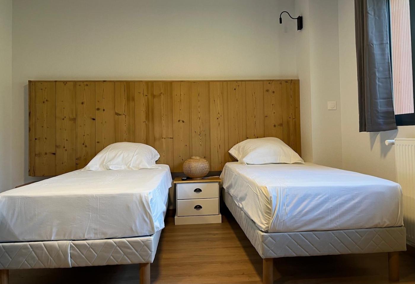 Chambre Triple. The triple room provides a wardrobe, parquet floors, a balcony with garden views as well as a private bathroom featuring a walk-in shower. The unit offers 2 beds. ;