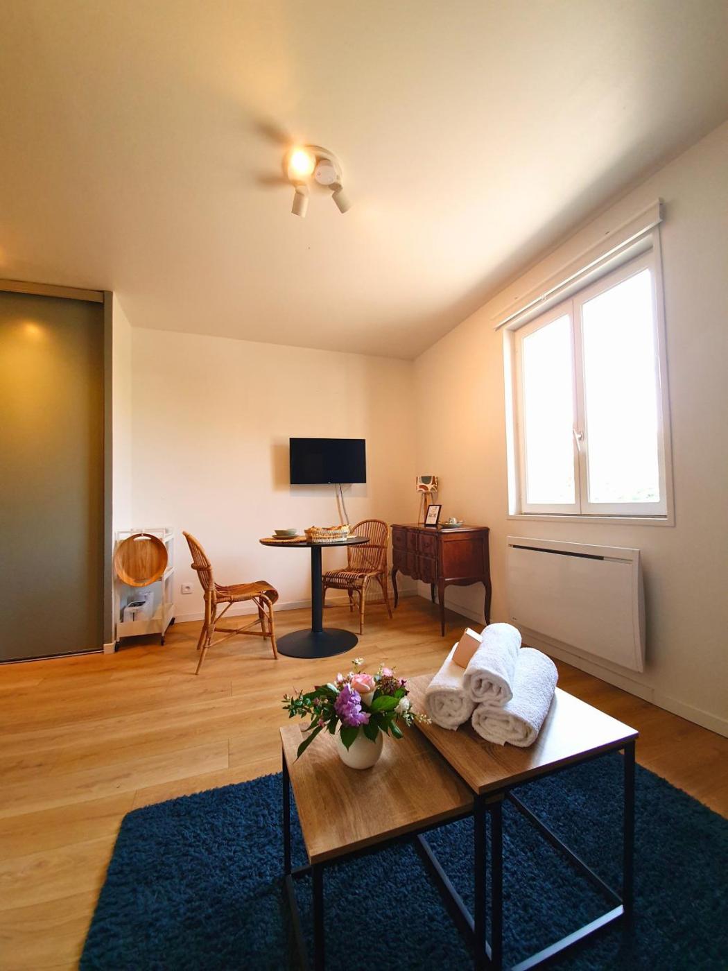 Studio. The studio features a private bathroom, a washing machine, a tea and coffee maker, as well as a seating area with a flat-screen TV. In the kitchen, guests will find a stovetop, a refrigerator, kitchenware and a microwave. The studio offers a dining area, a wardrobe, a sofa, parquet floors and a TV. The unit offers 1 bed.
