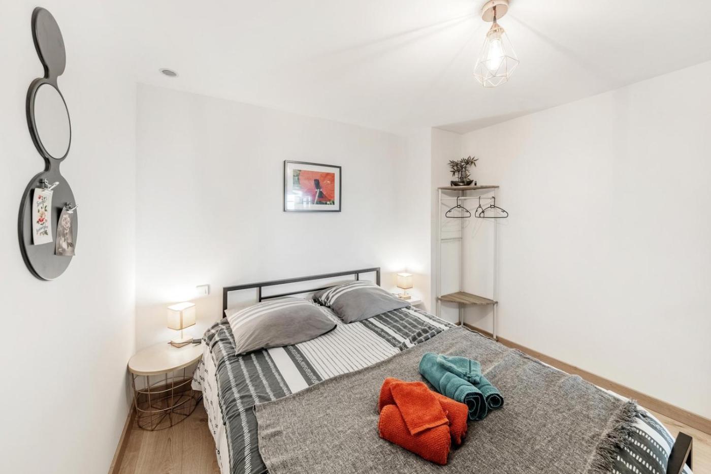 Cet appartement comprend 2 chambres, une télévision, une cuisine équipée avec un réfrigérateur et un four, un lave-linge, ainsi que 1 salle de bains avec une douche. Des serviettes et du linge de lit sont disponibles.