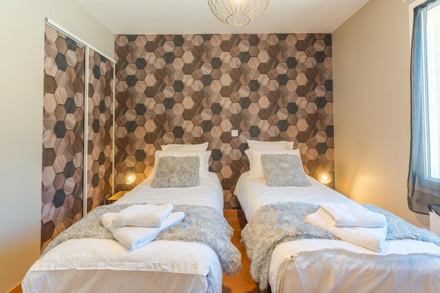 Maison 2 Chambres. Featuring a private entrance, this air-conditioned holiday home comprises a kitchen, 2 bedrooms and 1 bathroom with a bath and a hairdryer. Guests will find a dishwasher, kitchenware, an oven and a microwave in the fully equipped kitchen. The holiday home also provides guests with a barbecue. The holiday home provides a TV with streaming services, a washing machine, a coffee machine, a safe deposit box as well as garden views. The unit offers 2 beds.