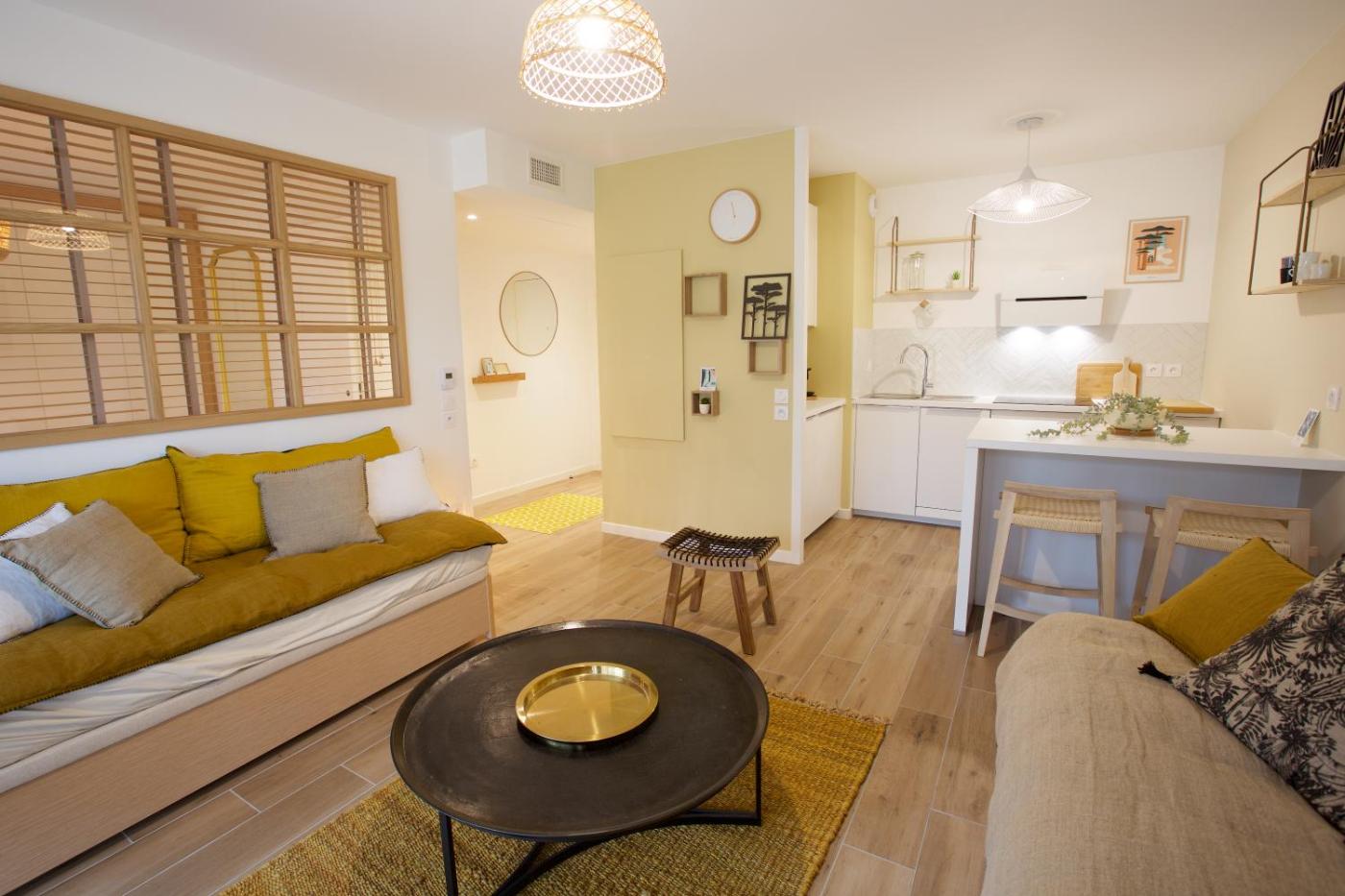 Appartement 1 Chambre. Boasting 1 bedroom, this apartment has 1 bathroom with a shower, a seating area and terraceyou can relax. The fully equipped kitchen has a stovetop, a refrigerator, a dishwasher and kitchenware. This apartment features a washing machine, a tea and coffee maker, a flat-screen TV and an outdoor dining area. The unit offers 3 beds.
