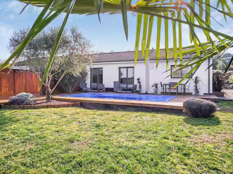 Maison 2 Chambres. The pool with a view is a top feature of this holiday home. Boasting a private entrance, this air-conditioned holiday home comes with a kitchen, 2 bedrooms and 1 bathroom with a bath and a shower. Guests will find a stovetop, a refrigerator, a dishwasher and kitchenware in the well-fitted kitchen. The holiday home also includes a barbecue. Featuring a terrace with garden views, this holiday home also features a washing machine and a flat-screen TV with streaming services. The unit has 2 beds.