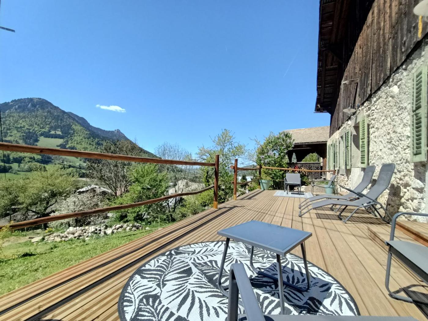 Chambre Double avec Terrasse. The double room features soundproof walls, a wardrobe, a terrace with mountain views as well as a private bathroom boasting a shower. The unit has 1 bed. ;